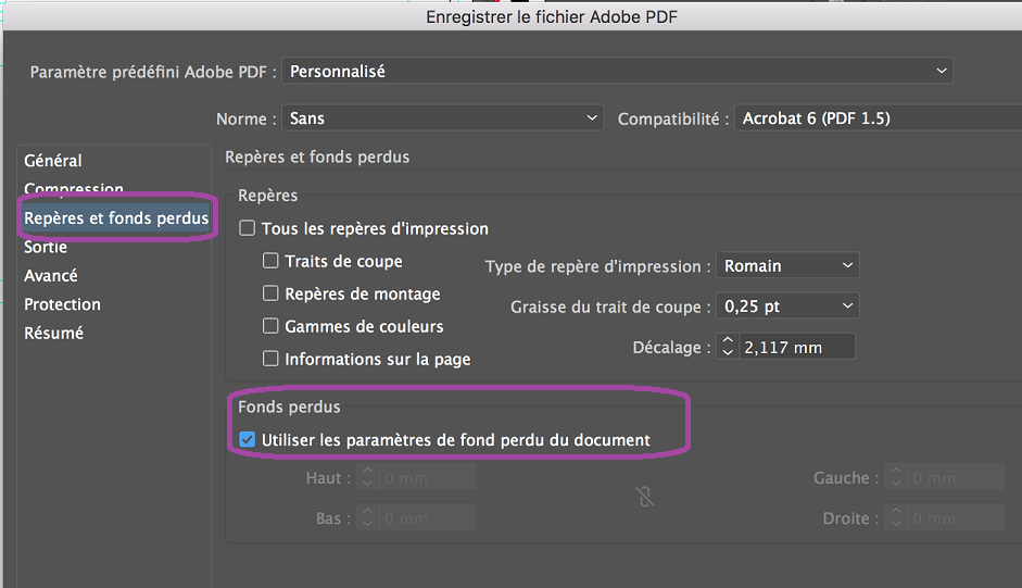 - Repère et fond perdu.