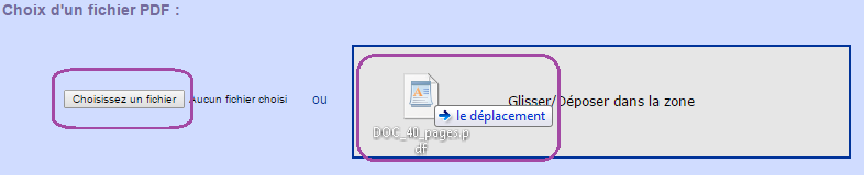 L'attachemlent peut se faire soit en cliquant sur Parcourir soit en glissant le fichier dans la zone centrale sur fond gris.