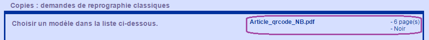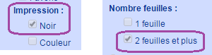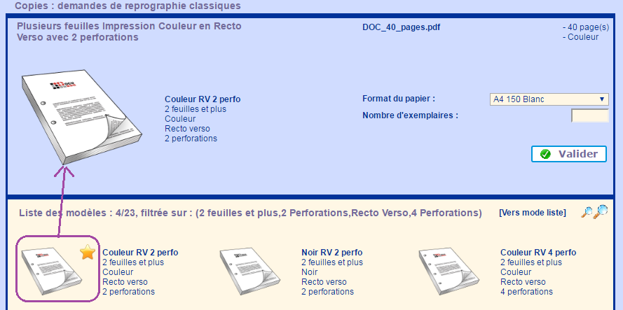 Il faut alors renseigner sur la droite de cette section le type de papier à utiliser ainsi que le nombre d'exemplaire souhaité.