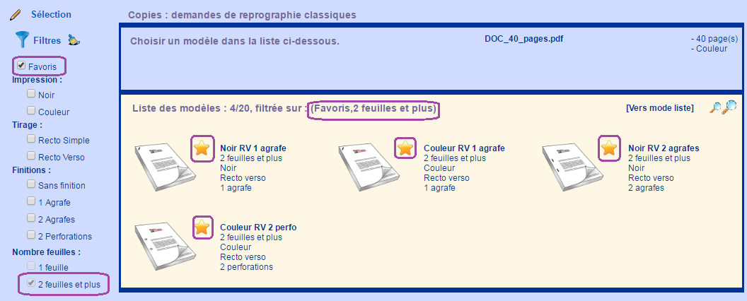 L'application pré-filtre alors aussi sur le critère du type de tirage du document :