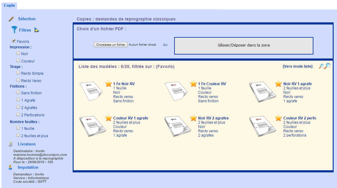Une fois le document téléchargé du poste de travail du demandeur vers le serveur, celui ci est analysé et l'application affiche alors le nombre de page du document ainsi que le diagnostique couleur.
