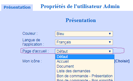 Ainsi tant que l'utilisateur ne personnalise pas sa page d'accueil dans Mon profil, la modification de la page d'accueil par défaut défini dans la configuration Générale lui sera appliquée.